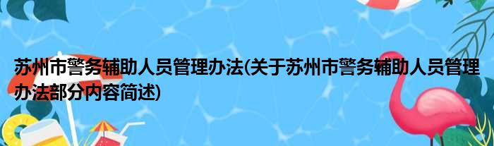 苏州市警务辅助人员管理办法(关于苏州市警务辅助人员管理办法部分内容简述)
