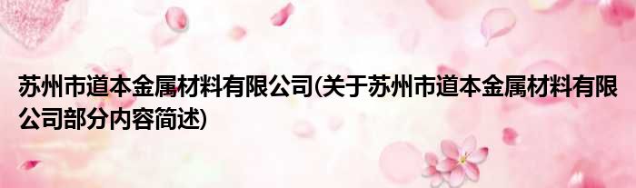 苏州市道本金属材料有限公司(关于苏州市道本金属材料有限公司部分内容简述)