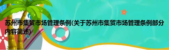 苏州市集贸市场管理条例(关于苏州市集贸市场管理条例部分内容简述)