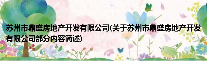 苏州市鼎盛房地产开发有限公司(关于苏州市鼎盛房地产开发有限公司部分内容简述)