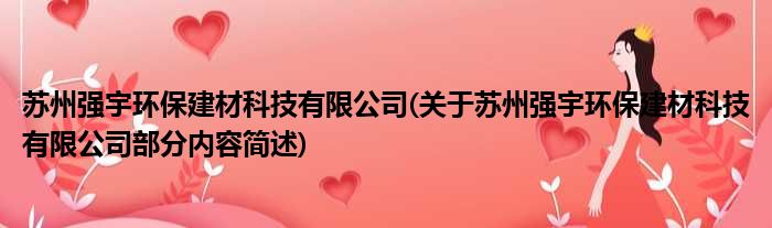 苏州强宇环保建材科技有限公司(关于苏州强宇环保建材科技有限公司部分内容简述)