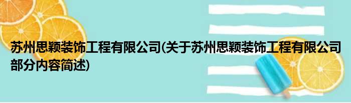 苏州思颖装饰工程有限公司(关于苏州思颖装饰工程有限公司部分内容简述)