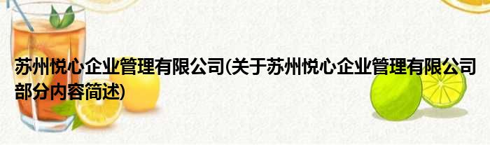 苏州悦心企业管理有限公司(关于苏州悦心企业管理有限公司部分内容简述)