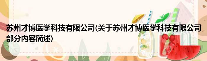苏州才博医学科技有限公司(关于苏州才博医学科技有限公司部分内容简述)