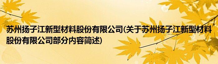 苏州扬子江新型材料股份有限公司(关于苏州扬子江新型材料股份有限公司部分内容简述)