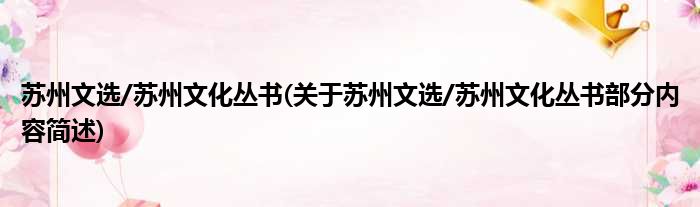 苏州文选/苏州文化丛书(关于苏州文选/苏州文化丛书部分内容简述)