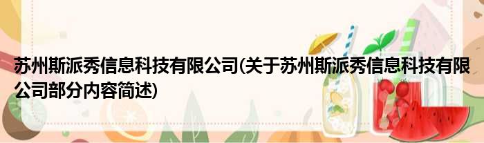 苏州斯派秀信息科技有限公司(关于苏州斯派秀信息科技有限公司部分内容简述)
