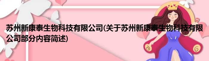 苏州新康泰生物科技有限公司(关于苏州新康泰生物科技有限公司部分内容简述)