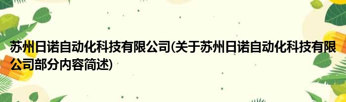 苏州日诺自动化科技有限公司(关于苏州日诺自动化科技有限公司部分内容简述)