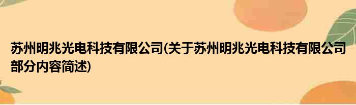 苏州明兆光电科技有限公司(关于苏州明兆光电科技有限公司部分内容简述)