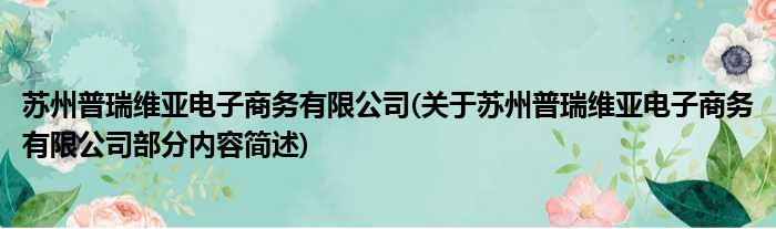 苏州普瑞维亚电子商务有限公司(关于苏州普瑞维亚电子商务有限公司部分内容简述)