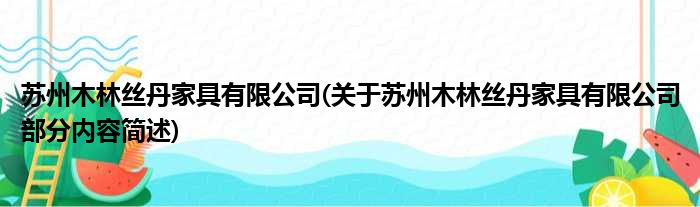 苏州木林丝丹家具有限公司(关于苏州木林丝丹家具有限公司部分内容简述)