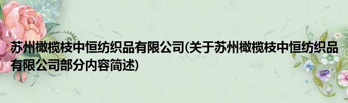 苏州橄榄枝中恒纺织品有限公司(关于苏州橄榄枝中恒纺织品有限公司部分内容简述)