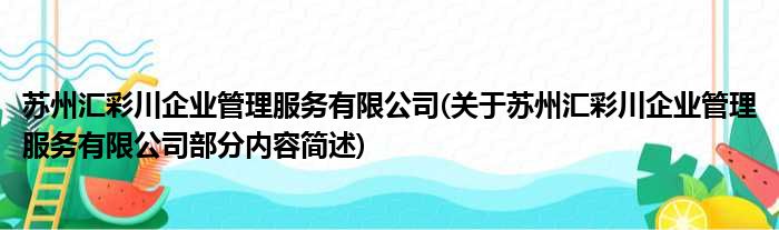 苏州汇彩川企业管理服务有限公司(关于苏州汇彩川企业管理服务有限公司部分内容简述)