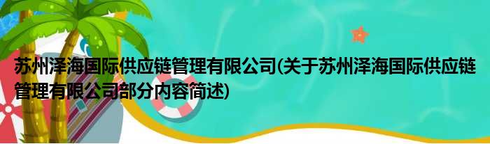苏州泽海国际供应链管理有限公司(关于苏州泽海国际供应链管理有限公司部分内容简述)