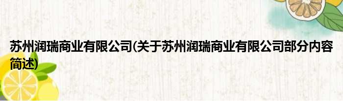 苏州润瑞商业有限公司(关于苏州润瑞商业有限公司部分内容简述)