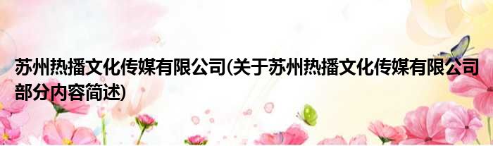 苏州热播文化传媒有限公司(关于苏州热播文化传媒有限公司部分内容简述)