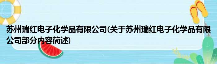 苏州瑞红电子化学品有限公司(关于苏州瑞红电子化学品有限公司部分内容简述)