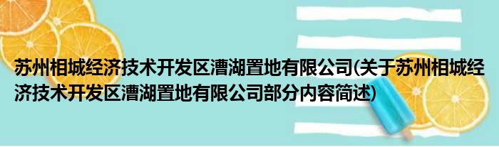 苏州相城经济技术开发区漕湖置地有限公司(关于苏州相城经济技术开发区漕湖置地有限公司部分内容简述)