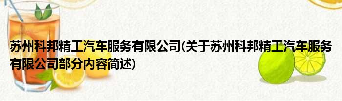 苏州科邦精工汽车服务有限公司(关于苏州科邦精工汽车服务有限公司部分内容简述)