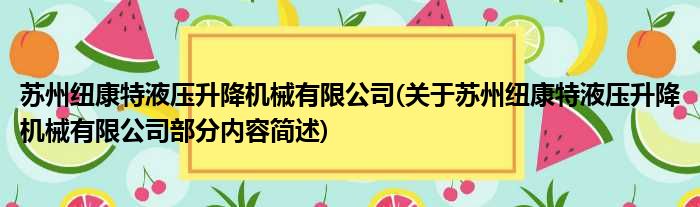 苏州纽康特液压升降机械有限公司(关于苏州纽康特液压升降机械有限公司部分内容简述)