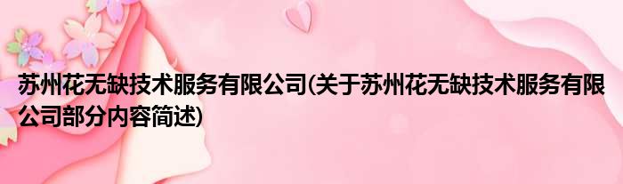 苏州花无缺技术服务有限公司(关于苏州花无缺技术服务有限公司部分内容简述)