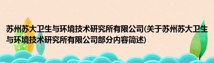 苏州苏大卫生与环境技术研究所有限公司(关于苏州苏大卫生与环境技术研究所有限公司部分内容简述)