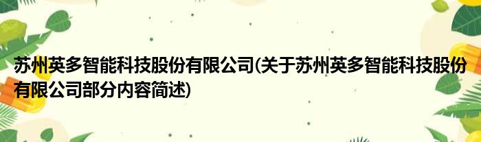 苏州英多智能科技股份有限公司(关于苏州英多智能科技股份有限公司部分内容简述)