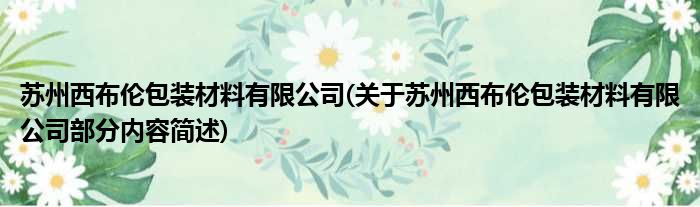 苏州西布伦包装材料有限公司(关于苏州西布伦包装材料有限公司部分内容简述)