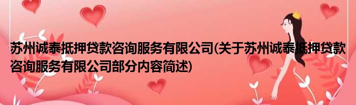 苏州诚泰抵押贷款咨询服务有限公司(关于苏州诚泰抵押贷款咨询服务有限公司部分内容简述)
