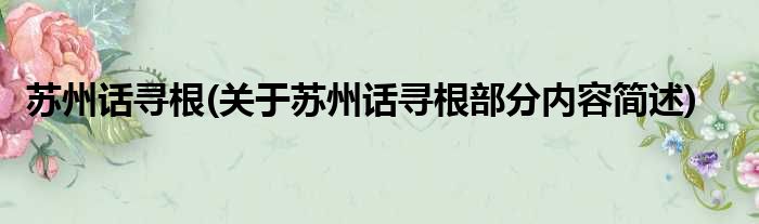 苏州话寻根(关于苏州话寻根部分内容简述)