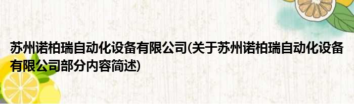 苏州诺柏瑞自动化设备有限公司(关于苏州诺柏瑞自动化设备有限公司部分内容简述)