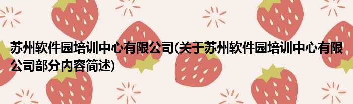 苏州软件园培训中心有限公司(关于苏州软件园培训中心有限公司部分内容简述)