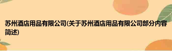 苏州酒店用品有限公司(关于苏州酒店用品有限公司部分内容简述)