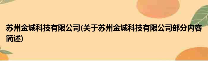 苏州金诚科技有限公司(关于苏州金诚科技有限公司部分内容简述)