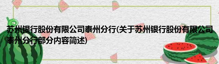 苏州银行股份有限公司泰州分行(关于苏州银行股份有限公司泰州分行部分内容简述)