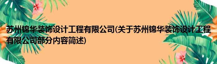 苏州锦华装饰设计工程有限公司(关于苏州锦华装饰设计工程有限公司部分内容简述)