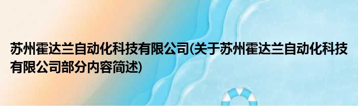 苏州霍达兰自动化科技有限公司(关于苏州霍达兰自动化科技有限公司部分内容简述)