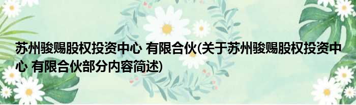 苏州骏赐股权投资中心 有限合伙(关于苏州骏赐股权投资中心 有限合伙部分内容简述)