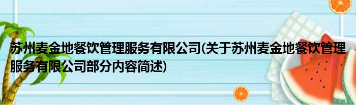 苏州麦金地餐饮管理服务有限公司(关于苏州麦金地餐饮管理服务有限公司部分内容简述)