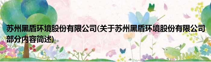 苏州黑盾环境股份有限公司(关于苏州黑盾环境股份有限公司部分内容简述)