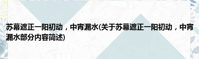 苏幕遮正一阳初动,中宵漏水(关于苏幕遮正一阳初动,中宵漏水部分内容简述)
