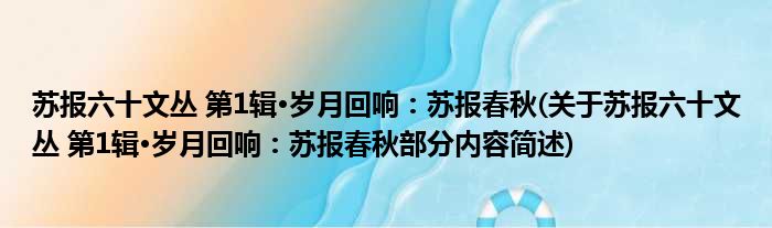 苏报六十文丛 第1辑·岁月回响:苏报春秋(关于苏报六十文丛 第1辑·岁月回响:苏报春秋部分内容简述)