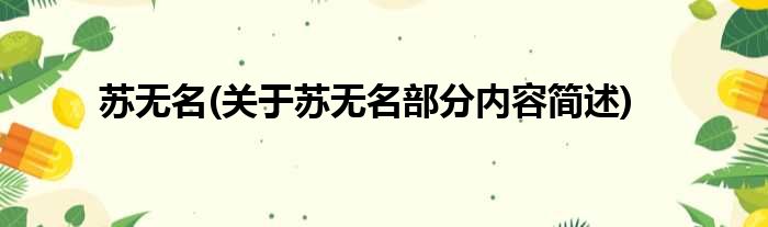 大家好,今天小方来说说一篇关于苏无名,关于苏无名部分内容简述的文章,那么现在就为大家来简单介绍下,希望对各位小伙伴们有所帮助。