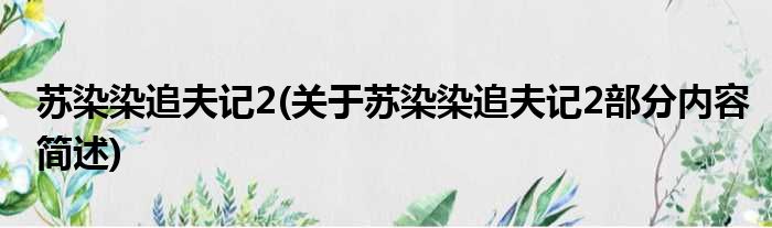 苏染染追夫记2(关于苏染染追夫记2部分内容简述)