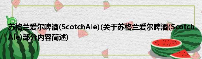 苏格兰爱尔啤酒(ScotchAle)(关于苏格兰爱尔啤酒(ScotchAle)部分内容简述)