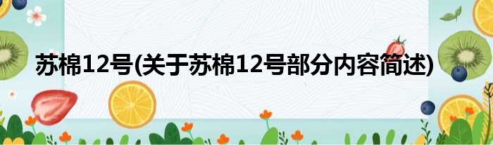 大家好,今天小方来说说一篇关于苏棉12号,关于苏棉12号部分内容简述的文章,那么现在就为大家来简单介绍下,希望对各位小伙伴们有所帮助。
