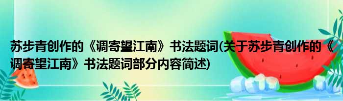 苏步青创作的《调寄望江南》书法题词(关于苏步青创作的《调寄望江南》书法题词部分内容简述)