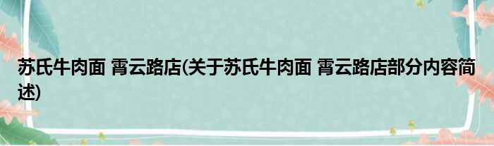 苏氏牛肉面 霄云路店(关于苏氏牛肉面 霄云路店部分内容简述)