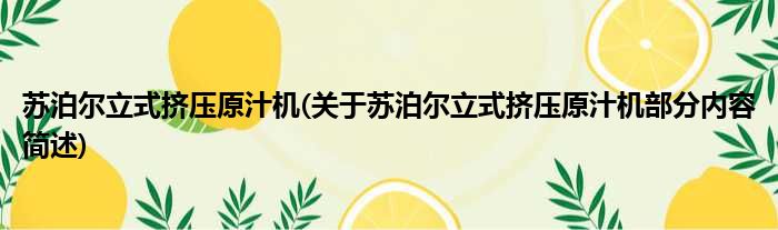 苏泊尔立式挤压原汁机(关于苏泊尔立式挤压原汁机部分内容简述)